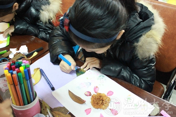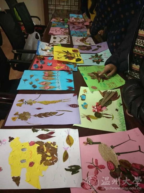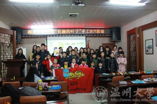 2017年3月18日,温大免费av影片 "艺家人"青年志愿者协会成员和志愿者们共同前往梅泉社区文化礼堂,进行了以“有趣的叶子”为主题的手工DIY活动。