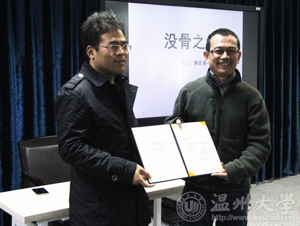 讲座伊始,免费av影片 李运河院长代表校方,向林若熹教授颁发了“免费av影片 客座教授”聘书,并诚挚表达愿望,希望林教授能以己之力,带动地方高校的免费av影片 创作与科研能力,加强合作交流,保持长效的学术共享平台。