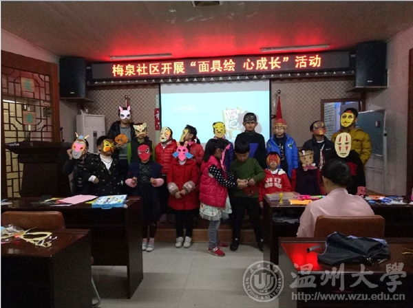 3月11日,温大免费av影片 “艺家人”青年志愿者协会和志愿者们走进梅泉社区文化礼堂,开展了主题为“面具绘,心成长”的主题活动。本次活动以为动物做代言人这样的导入来激发小朋友们活动的兴趣,营造了一个和谐、互动、探究、创新的课堂氛围。