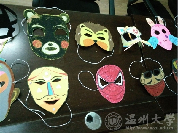 小组代表赵榭橦同学上台讲话,讲述本次主题的灵感来源,以及如何设计典型的动物面具形象,并向小朋友们播放制作视频。看完后,小朋友们分组讨论所要设计的动物或者人物故事,角色的性格特征,考虑用什么主色以及辅色,更适合其作品。作品完成后,孩子们戴上自己制作独具一格的面具进行“猜猜我是谁”的游戏活动。他们一张张可爱的小脸戴着各具形态的面具脸,左猜猜,右看看,情趣盎然。活动后,志愿者与孩子们分享成功的喜悦,抓住时机为孩子们摄影留念。