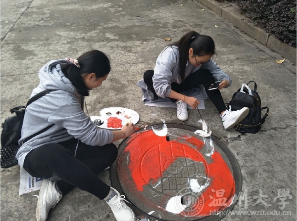 2016年11月27日,免费av影片 “艺家人”青年志愿者协会在免费av影片 服装楼周围举行了主题为“彩色+创意+环保=美好校园”的井盖涂鸦活动。