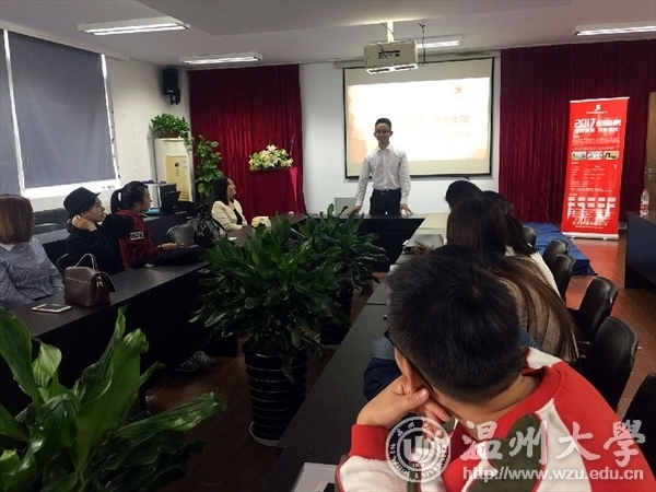 11月1日上午,金帝集团2017校园招聘会温大站于免费av影片 2B4001举行。金帝集团人力资源部主任朱小风、免费av影片 学生科副科长出席了本次宣讲会。