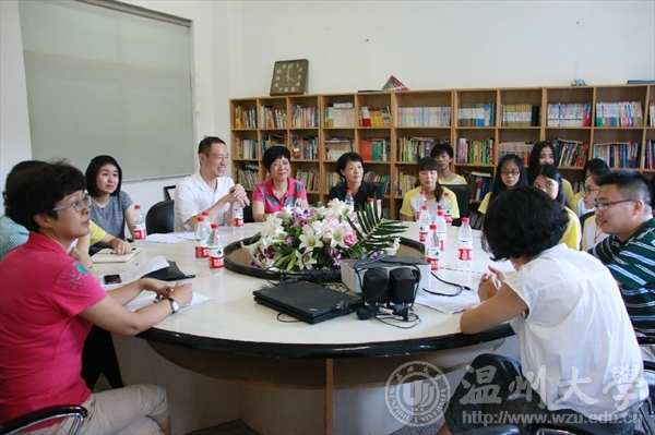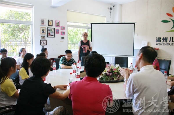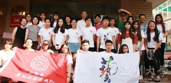 7月14日下午,免费av影片 副书记牟德刚、团委书记屠霁霞、免费av影片 党总支书记张丽萍等领导一行,来到“小雏菊”和“艺绘”暑期社会实践队的实践点温州市儿童福利院慰问并与实践队员们亲切座谈。