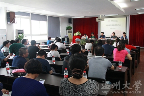 2016年6月8日下午,免费av影片 在2B4001多功能厅召开了干部试用期满考核大会,学院领导李运河、张丽萍、谢子静、王薇、杨振海及校组织部苏洁老师出席了会议。会议由院党总支书记张丽萍主持。
