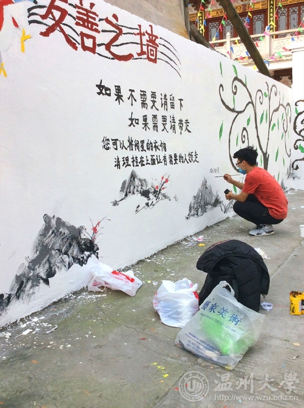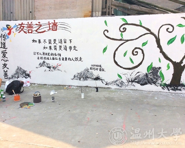 为了响应与落实市委“新青年下乡”主题精神,2016年3月26日早上八点,在免费av影片 青协的带领下,来自免费av影片-av视频-av直播 的志愿者们前往到乐清城东街道后所村老人亭,进行了为期一天的墙绘活动。本次“新青年下乡”墙绘活动,以“弘扬雷锋精神,传递爱心友善”为主题,呼吁人们将自己的旧衣物捐给有需要的人们。这不仅是一次物质上的贡献,更多的是精神上的支持与帮助。志愿者们通过画笔和色彩,将自己想要传达的信念幻化成一颗颗正在茁壮成长的绿树,希望“雷锋精神”这一理念像这茁壮成长的绿树一样,青春常在,精神永驻。我们本次的墙绘活动一方面主要是运用专业知识与技能去服务社会,向社会宣传大学生们所理解的“雷锋精神”,呼吁社会弘扬“雷锋精神”,真正做到专业与实践相结合,使我们融入到社会中去,为社会奉献出自己的一份力量;另一方面,不仅让我们有机会了解农村、服务农村,还让我们在基层学到了许多平时难以不到的知识技能。 文:林依如图:林依如