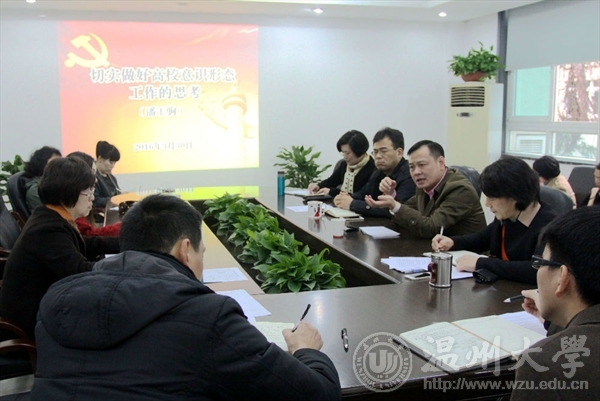 为了切实做好学院意识形态工作,进一步增强基层党员干部理论素养,3月30日,免费av影片 党总支召开全体党员理论学习会(中心组理论学习扩大会会议) ,特邀免费av影片 党委委员、宣传部部长潘玉驹做高校意识形态专题讲座。学院总支书记张丽萍主持学习会。