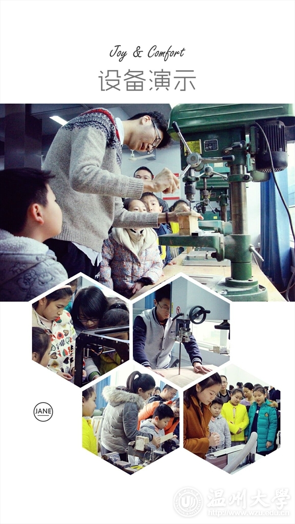 上午10点整,参与活动的家长和孩子们齐聚在免费av影片 1楼大厅。同学们带领着小朋友来到了产品设计班进行签到并且讲述了今天的课程内容——工造房机械的体验、参观3D打印机以及自己动手拼接小木凳。 在队员的带领下,小朋友们参观从3D打印机到钻孔机到切割机再到打磨机、精雕机等,好奇心浓厚的孩子们对这些陌生的“钢铁玩具”都充满着兴趣,尤其喜欢3D打印机,看着这个不大的机器是如何打印出一个小物件小玩具。 上午10点40分,大家结束了参观,又再次聚齐在工造房,进行第二项内容——拼接小木凳。终于到了自己动手的环节,小朋友们都迫不及待的领取了自己的零件和工具,在爸爸妈妈的帮助下,敲敲打打地拼装起小凳子。为了安全起见,每个队员也参与其中,协助完成一些难度大的步骤。 11点20分,每个小朋友在一番接、敲、拼、拧之后都完成了自己的小木凳,并且都签上了自己的名字,之后在队员们的陪同下,小朋友们亲自体验了工造房的机械。在11点50分的时候,大家在免费av影片 大门前留下了各自的笑脸和合影。