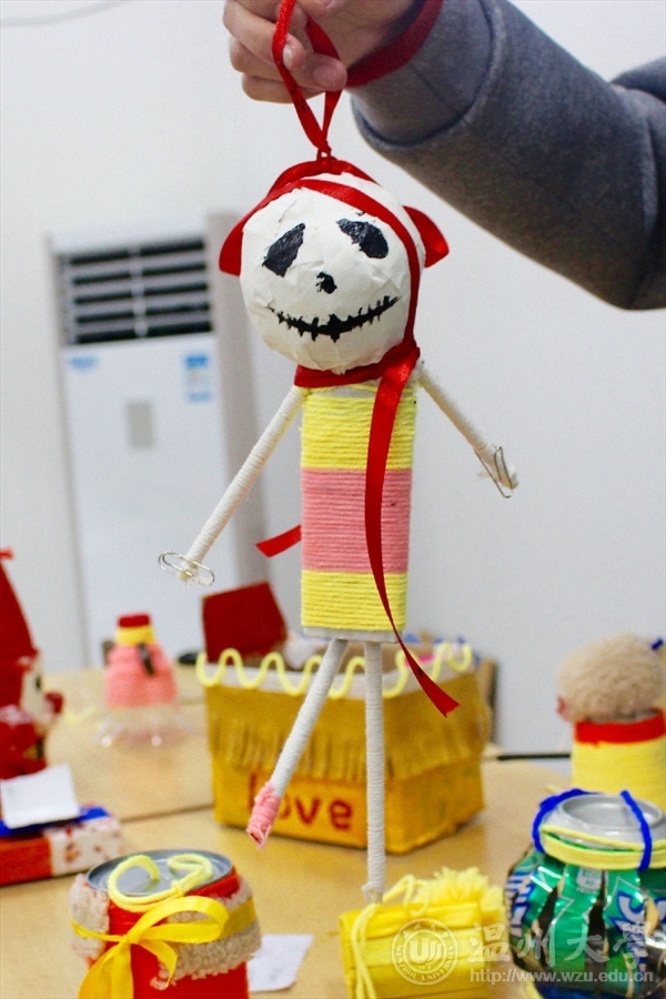2点整,活动准时在免费av影片 2B3001展开。首先由本次活动的“艺家人”青协志愿者负责人上台致活动开讲词,随后就是志愿者的创作时间。作为免费av影片 的学生,动手能力自然是十分出色的。活动室里,志愿者领了物品后手上的活动就一直没有停歇,创作了一个又一个可爱的冬日小饰品。一件件看似毫无用处的废旧物品经过志愿者的改造变成了令人爱不释手的精美饰品,有的志愿者利用废旧的饮料瓶做了圣诞老人,有的做了风铃,有的做了小房子……志愿者们出色的创造力,很好的展现了免费av影片 学子的风采。
