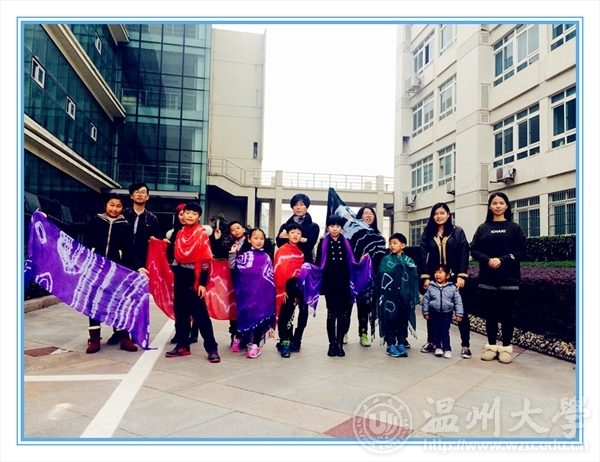 接着,仁老师主要讲述了制作工序以及期间需要注意的问题。之后,孩子家长们就投入到实践中,谨慎地设计,小心地穿线,打结,褶皱,全心全意。不久后,陆陆续续的完成了“扎”,接着便是“染”的环节了。家长和孩子们将准备好的围巾,浸泡并且进行染色。经过一段时间的等待,在拆线解绑的瞬间,家长和孩子们都露出了欣慰的笑容,都赢得了满座的夸赞。