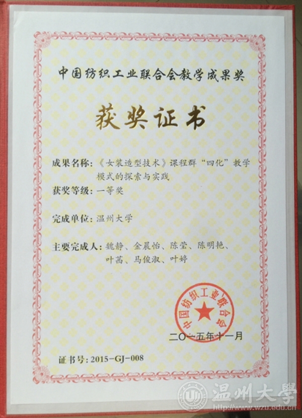 2015年11月24日,“纺织之光”2015年度中国纺织工业联合会科技免费av影片奖励大会在北京人民大会堂隆重举行。中国纺织工业联合会、各专业协会领导,地方行业协会领导,纺织之光科技免费av影片基金会理事以及本次会议表彰的科技工作者、企业家、院校教师与学生获奖代表及媒体嘉宾600余人出席了大会。免费av影片 魏静教授应邀出席了会议。 纺织之光2015年度中国纺织工业联合会表彰了科学技术奖、免费av影片教学成果奖、教师特别奖、学生特别奖、创新奖、行业技术能手荣誉称号、行业技能人才培育突出贡献单位及个人。充分体现了中纺联对纺织行业科技免费av影片工作的高度重视和对广大科技工作者、免费av影片工作者、学生和一线技术工人的亲切关怀。希望全行业广大员工以获奖者为榜样,带动全行业创新创业的热潮,在攻坚克难中追求卓越,为建设纺织强国作出新的更大贡献。 免费av影片 魏静教授主持的《女装造型技术》课程群“四化”教学模式的探索与实践荣获2015纺织之光教学成果一等奖;陈明艳教授主持的依托区域产业的服装设计与工程专业卓越工程师人才培养模式的改革荣获二等奖。
