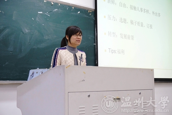 12月5日午时1点半,免费av影片 团委学生会全体干事及新生干部于北校人文楼202室举行了2015-2016学年第三次团干培训,出席此次培训的嘉宾是温州商报记者、原温大记者团主编夏灵犀学姐。初冬冷雨绵绵而下,虽然天公不作美,但是我们免费av影片 团学的干事还是早早的到达了会场。座谈会一开始,灵犀学姐首先从她的大学生活引入,讲述她的记者之路。她说:“面对大学生活扑面而来的新鲜、热情、紧张和刺激,应该学会多一点的尝试、坚持和挑战。”她也有第一次见到知名教授的激动,第一次加入记者社团的好奇......然而满怀热情,在人生的重要转折点,也容易迷失方向。面对这些她说到:“心沉下来,明心才能明事理!要明白自己离未来究竟有多远,做好职业生涯规划很重要”。随后,便开始了对新闻采访与写作的培训,灵犀学姐首先提出了选题的重要性、显著性、时新性、趣味性,告诉大家要学会在变化中发现新闻,触类旁通寻找新闻。针对采访便从如何准备采访和如何采访两个角度出发,并且传授给大家更多细致的语言沟通技巧和抓取采访亮点的小诀窍。最后,对于如何提高新闻稿编写能力,灵犀学姐分别从技能、心理、体力三个方面进行了一些小建议,并留出提问时间,有同学提问关于如何处理好专业学习与兴趣拓展之间的矛盾,学姐指出专业学习是本业,自然是不能耽误的,而兴趣拓展是开拓眼界的好机会,如果是自己所钟爱的,自然也是不能轻易放弃,对于那些纸上谈兵的人来说,梦想,在遥不可及的千里之外;但对于那些有着“千里之行,始于足下”的精神的人来说,梦想,近在咫尺!掌声久久不息,学姐分享的话语,仿若窗外的雨,点点滴滴,组成了一个小文库,发人深省,相信免费av影片 团学干部们的新闻采访与写作能力也有了进一步的提升。 文字:吴欣、张彬瑶 摄影:黄麟捷