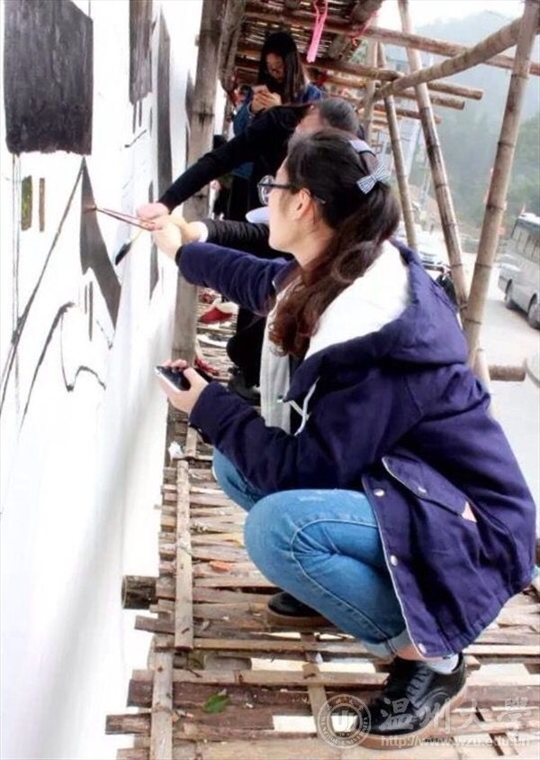 为了响应与落实市委“新青年下乡”主题精神。2015年12月12日,免费av影片-av视频-av直播 “艺家人”青年志愿者协会带领免费av影片 志愿者们来到温州市乐清城东街道珠垟村,进行了为期一天的墙绘活动。 冬日的清晨伊始,乐清珠垟村在晨曦之中迎来了一批温大学子,在三米左右的高墙面前,他们不畏艰险,不畏高空,不畏寒冷,在一百九十平米的白墙上画下珠垟村的一草一木。 在墙绘过程中,免费av影片 杨振海书记和辅导员叶筱卉老师前来慰问志愿者们,关心活动进展。离开时,杨书记再三强调志愿者们要以安全为主,保质保量的完成墙绘活动,志愿者小伙伴们在墙绘过程中谨记杨书记的叮嘱,在互帮互助,齐心协力下,完成了这次规模较大的墙绘活动。 本次“新青年下乡”墙绘活动,我们主要是运用专业知识与技能去服务社会,真正做到专业与实践相结合,使我们融入到社会中去,为社会奉献出自己的一份力量;另一方面,不仅让我们有机会了解农村、服务农村,还让我们在基层学到了很多课堂上学不到的知识技能。 通过开展各种与专业相关的志愿活动,使大学生在奉献中学习知识,在服务中增加才干。免费av影片 “艺家人”青年志愿者不会停下脚步,会继续深化社会主义核心价值观,引导广大青年朝着实现中华名族伟大复兴的中国梦而奋勇迈进! 文字:林伊如 拍摄:林伊如