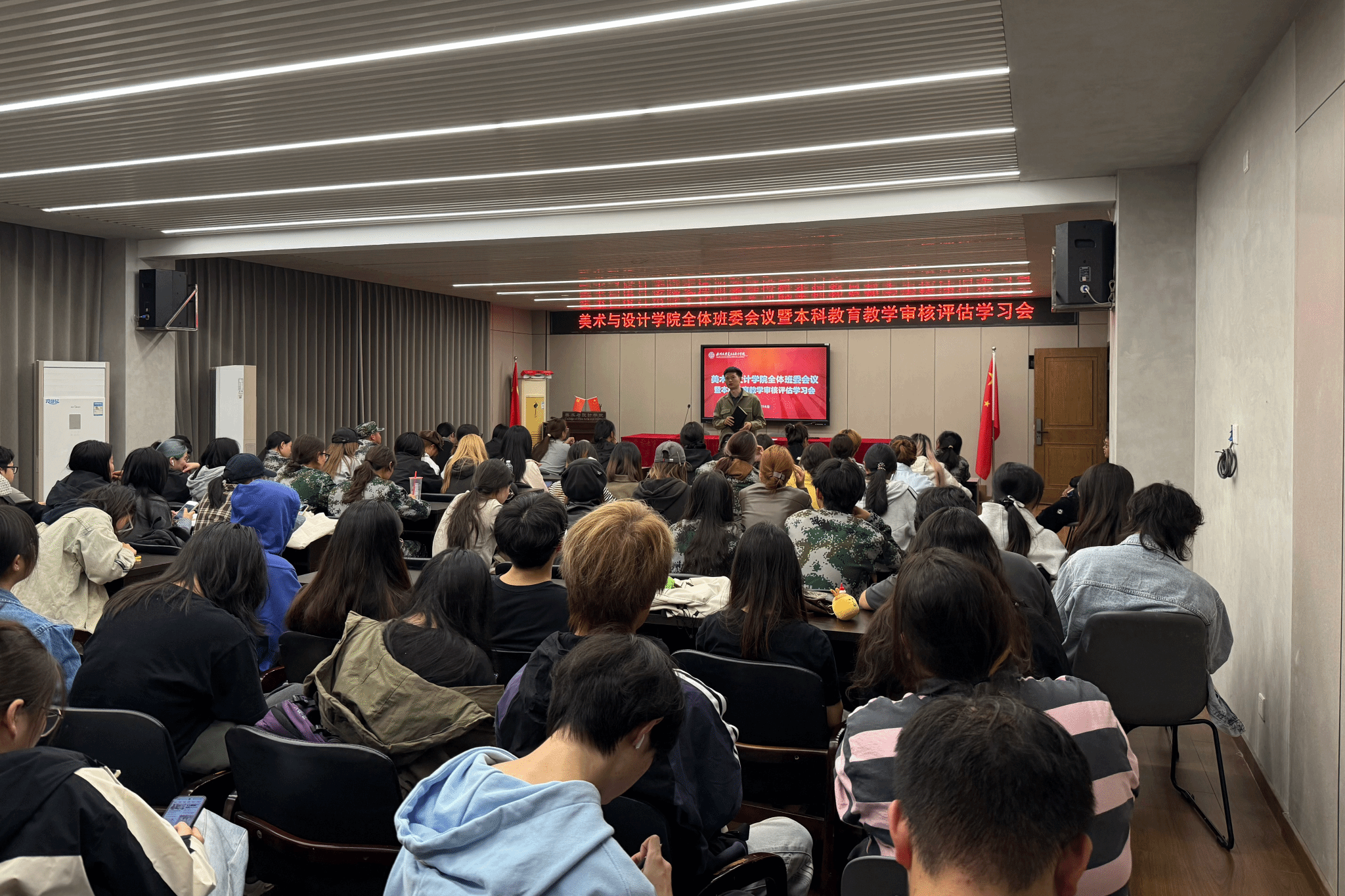 为深入配合学校本科免费av影片教学审核评估工作,进一步加强学生骨干队伍建设,免费av影片 于2025年10月15日下午在2B4001会议室组织召开了全体班委会议暨本科免费av影片教学审核评估学习会。学院学工办副主任杨永利老师出席会议,各年级全体班委参加。