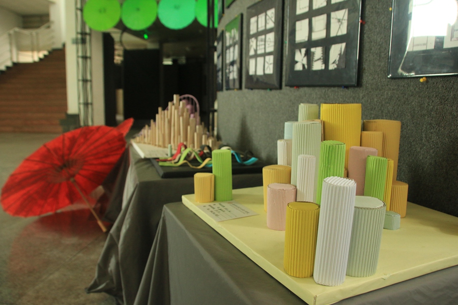 此次展示的作品全部是2013级产品设计班同学的专业课程作业,作品形式大致为品面构成,色彩构成,立体构成三个种类,在老师的耐心指导和全班同学的积极参与下,本次作业展取得了很好的效果,不但提高了班级同学的专业认识,还加强了和其他专业的交流,其次更是向学院老师同学直观的展示了13产品设计班同学的学习风貌和专业水平。