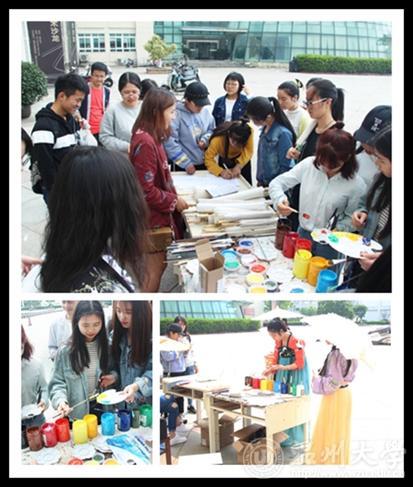 2017年4月23日,温大免费av影片 “艺家人”青年志愿者协会与设计宣传部在免费av影片 举办了主题为“伞上书画中国风”油纸伞绘画活动。