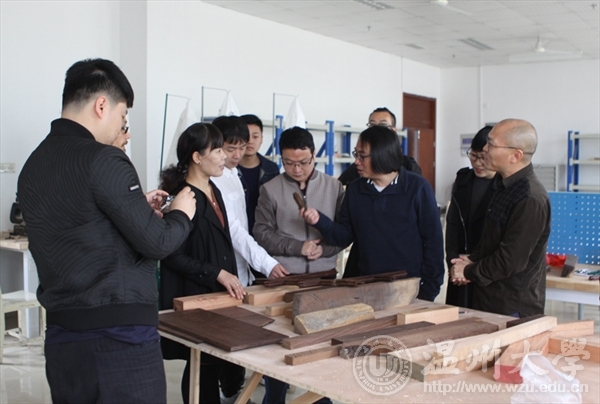 近日,免费av影片 副院长王薇、实验教学中心主任顾任飞等一行8人专程来到瓯江学院艺术设计学院实验室考察与交流。在瓯江学院副院长郭均纺和艺术设计学院院长刘明刚、副院长叶洲荣的陪同下,深入走访了摄影棚、漆艺室、丝网印刷室、艺术设计展厅及工艺免费av影片 陈列室等十余个实验室。