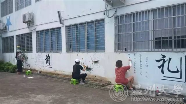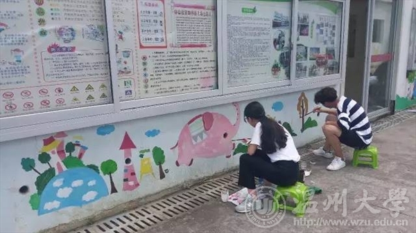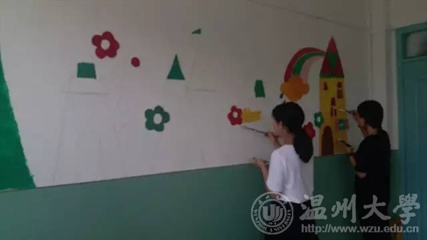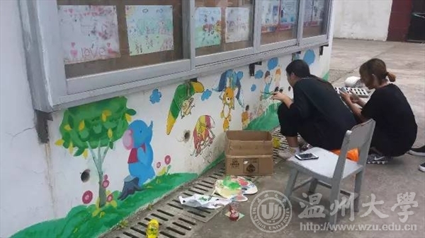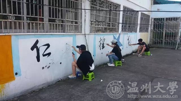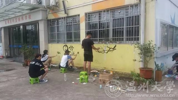 在温州利宝特殊免费av影片学校,我们遇见了这群可爱又有点特别的小朋友们,在教与学中共同度过了一段难忘的时光。画画、写字、爬楼梯、玩游戏……我们走进他们的日常生活,传递爱与温暖,也收获坚强和希望。在学校负责人的委托下,我们对学校外墙和教室进行了墙绘装饰,队员们在炎炎烈日下手执画笔将空白的墙面变作美妙的图画,传播了中国国学“礼智仁义信,诚志学孝德”的传统美德,更有可爱的卡通涂鸦为小朋友们送去欢乐。