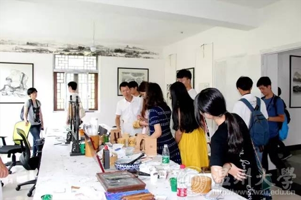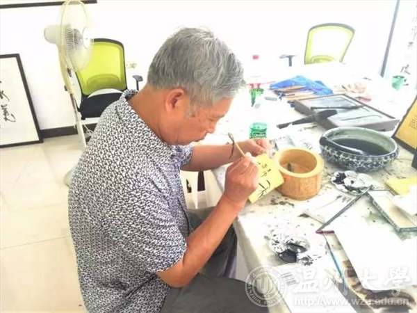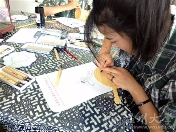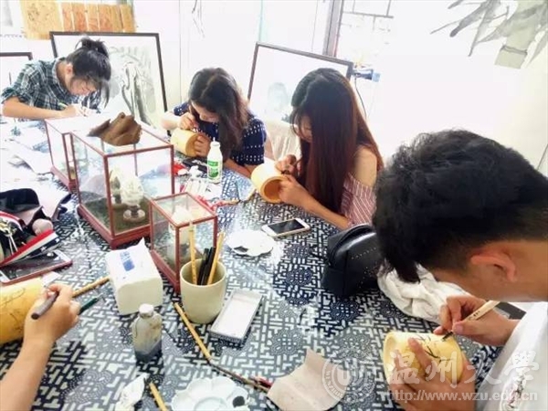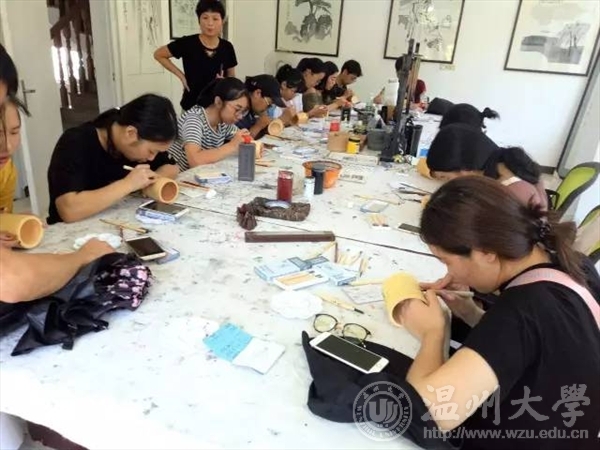 2017年7月5日,温大免费av影片 “艺韵晚霞”暑期社会实践队前往温州永嘉县瓯窑小镇,向民间艺术家学习被列为非遗之一的永嘉竹雕。此次活动受到了校领导的广泛关注,并将活动成果对台湾交流生进行了介绍和展示。