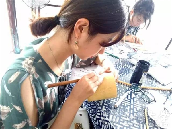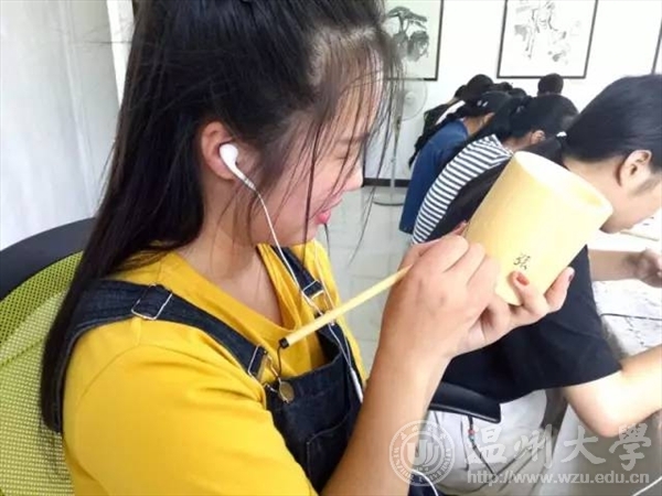 2017年7月5日,温大免费av影片 “艺韵晚霞”暑期社会实践队前往温州永嘉县瓯窑小镇,向民间艺术家学习被列为非遗之一的永嘉竹雕。此次活动受到了校领导的广泛关注,并将活动成果对台湾交流生进行了介绍和展示。 沿着龙头村便道驶入“瓯窑特色小镇”。“瓯窑小镇”四个大字跃入眼帘,在粉墙黛瓦的衬托下,浓厚的古风扑面而来;经过刚拓宽的水泥路,一片白墙上绘有描述古时烧制窑器的水墨画,象征坦头瓯窑遗址出土的青釉褐彩器物的龙下窑雕塑竖立在画前,让人感到一股浓浓的文化氛围。仿古竹雕第一人金可兴 温州浙楠书画院副院长世界画家协会会员中国工艺免费av影片 家协会会员法国书画家协会副主席中国当地百名优秀书画家之一 经过专业老师的指导,大家便尝试着进行笔筒木刻。 大家把笔筒横放,一手把着笔筒一手拿着刻刀,仔细地按着画好的纹路一点点地刻着,在专业老师的指导下尝试用不同的刻刀,不放过任何边边角角。 刻好后再用磨砂纸细细打磨,接着用毛笔进行上色工作。竹子,兰花,人物头像……一个个生动形象,让人不禁想凑近细细观察。 最后大家都在笔筒上刻上自己的名字留作纪念。 此次活动中,队员们不仅深入了解了瓯窑小镇,更深刻懂得了作为当代青年有责任尽自己的努力去保护非物质文化遗产,使得这些文化能够得到保护,从而可以更好的传承和发扬,因为它蕴含着中华民族特有的生命力、思维方式和想象力,是各民族智慧的结晶,也是全民族的瑰宝。台湾交流生前来参观 随着时代的变迁,越来越多的优秀文化消失在历史的长河中,而这一损失是不可弥补的,所以我们必须尽自己最大的努力去保护并传承它,哪怕只是一点点!