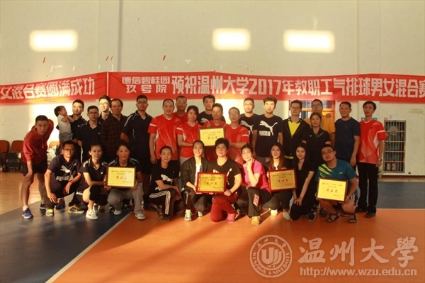 上周,我校工会举办了2017年“碧桂园杯”教工气排球男女混合赛。本次比赛共有17个分工会约170位教职工参赛。第一阶段的比赛于10月25在北校室外排球场举行,免费av影片 以小组第二的成绩晋级复赛。第二阶段于28日在北校区体育学院室内球馆举行,经过奋勇拼搏,最终取得了第五名的历史最好成绩。体育学院代表队获得第一名,瓯江学院代表队、后勤代表队、成教学院代表队、免费av影片 代表队、数学学院代表队分别获得前六名。