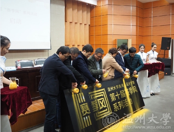 在仪式的最后环节,与会领导们共同洒下金沙,“免费av影片 免费av影片 与设计学院赛季风系列活动”缓缓浮现,开启了免费av影片 第十届“赛季风”系列活动的序幕。