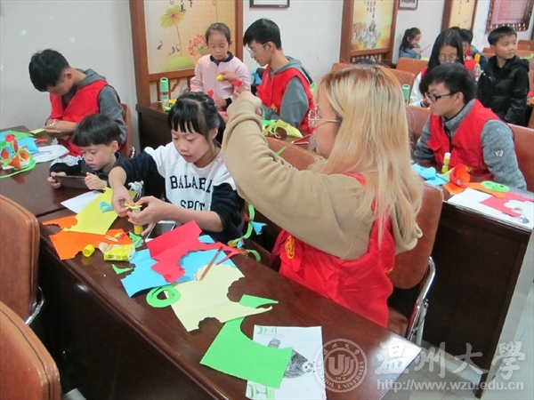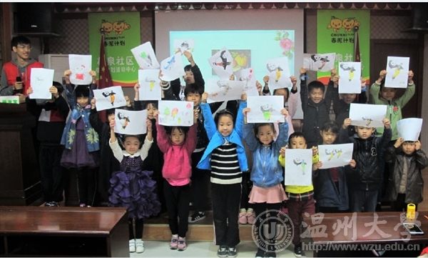 2017年11月18日,温大免费av影片 “艺家人”青年志愿者协会如期来到了梅泉社区文化礼堂进行了以“感恩”为主题的志愿活动。伴着微凉的风志愿者们又来到了熟悉的地方,开始了新的支教之旅。首先负责人陈南同学给小朋友们放了一段九分钟的亲情公益广告,志愿者和小朋友们都安安静静地看着大屏幕,脸上的表情也随着广告的剧情发展而变化,时而皱眉头,时而微笑。随后陈南同学根据公益广告中所涉及的人物开始组织大家画功夫熊猫。白白的绒毛肚子,夸张的高抬腿动作,橙色的趣味裤衩,大家画的津津有味。紧接着是评奖环节,小朋友们争先恐后地上讲台展示自己的作品,画的出色的十个小朋友得到了一根精美的糖果和有趣的红外线笔,没得到奖品的小朋友们也没有灰心,继续等待着下一轮的评奖机会。最后一个环节是手工活动——做花藤。这是做贺卡很重要的一部分,用来装饰。志愿者先剪下一条蛇状绿色纸条做藤蔓,再由小朋友们在彩色卡纸上画上花片,大家一起分工合作,其乐融融。花片卷成花瓣,粘在藤蔓上,很漂亮。陈南同学说,这都是用来粘在贺卡上的装饰,也可以粘在房间里,而做好的贺卡可以送给爸妈、老师来感恩他们的培育,也可以送给朋友感谢一直陪伴。活动期间,恰巧有免费av影片局的领导来梅泉采访,比往常更热闹一些,同时领导也对我们梅泉志愿者认真负责的态度连连称赞,并表示希望梅泉支教能够越办越好!通过本次活动,小朋友们不仅锻炼了动手操作能力,而且让小朋友们更加了解感恩是什么,知道要对父母感恩,要对朋友感恩,要对帮助过自己的人感恩。只要人人将自己所怀有的一颗感恩的心,变成实际行动的感恩时,这个社会将会多一分温暖,将会多一缕阳光的存在,将会多一点芬芳,同时也希望志愿者们和小朋友们常常怀有感恩的心去对待所遇到的人和事,你们的这份感恩的心将给予别人更多温暖。图/文:金 哲罗会慧董 悦
