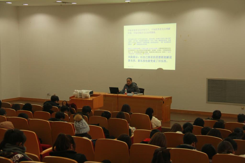 12月20日下午,免费av影片 在步青厅开展本学期第三次形势与政策课,免费av影片 教师免费av影片学院党总支书记杨立淮作题为“构建网络安全生态环境——大数据时代的思考”的形势与政策讲座,免费av影片 17级全体同学参加讲座。