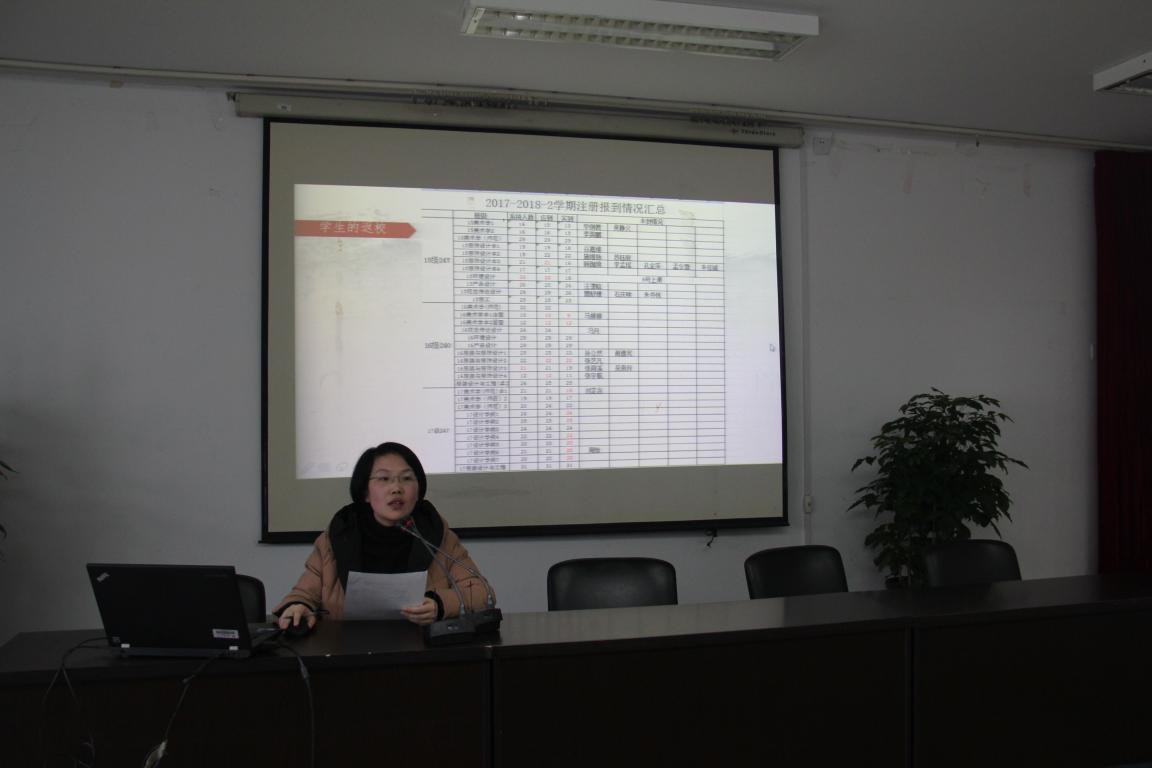 2018年3月7日下午,免费av影片 在2B4001召开2017-2018学年第二学期班主任大会,学院党总支副书记杨振海出席会议,全体班主任老师参加会议。会议由学生科副科长叶筱卉主持。
