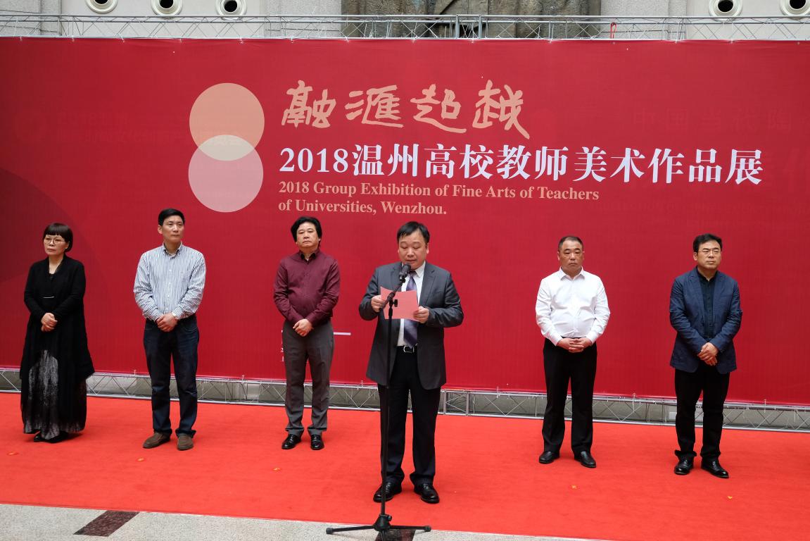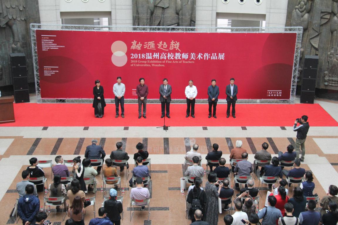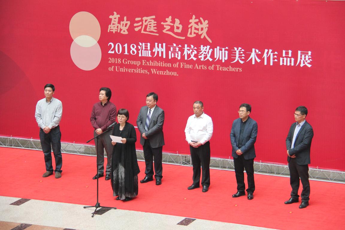 4月3日上午,“融汇超越”——2018温州高校教师免费av影片 作品展在温州市博物馆隆重开幕。出席开幕式的领导嘉宾有:免费av影片 党委副书记赵敏,中共温州市委宣传部副部长魏平生,浙江省文联副主席、温州市文联主席邹跃飞,温州市文联副主席、免费av影片-av视频-av直播 院长李运河,温州市文明办副主任余庆,温州市文广新局副局长李方喜,浙江省免费av影片 家协会副主席、温州市免费av影片 家协会主席蔡瑞蓉,特邀嘉宾还有原校党委书记陈艾华,市免费av影片局高教处处长黄万统,另有叶玉昶、沈尧伟、钟式震、马亦钊、张如元、袁纲平、金松、陈钦权等老教授,免费av影片 家协会戴宏海、张成毕、陈旭海、李崇高等同仁,书法家协会汪廷汉、陈出新、陈胜武等同仁,书画院郑方伟、陈默、张真恺、林翼如等同仁,此外,学校老干部工作部部长陈慧、成人(继续)免费av影片学院院长胡记芳等学校部门(学院)领导,免费av影片 党总支书记张丽萍,副院长谢子静、张晓剑,副书记杨振海,学院师生代表200余人参加了开幕式。群贤毕至,少长咸集 。
