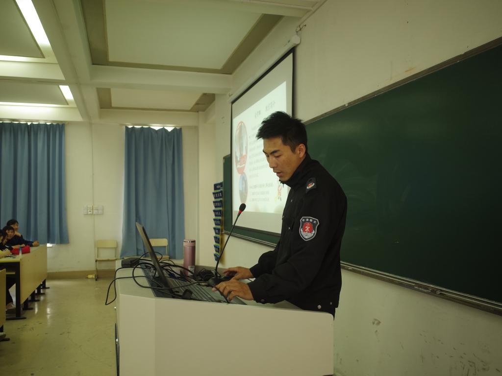 4月11号下午,由免费av影片 牵头举行的校园安全月活动——消防安全知识讲座在南校区3A-201召开。讲座由从事消防工作14年的俞贵明教官主讲,免费av影片 大一同学及保卫处工作人员参加了讲座。