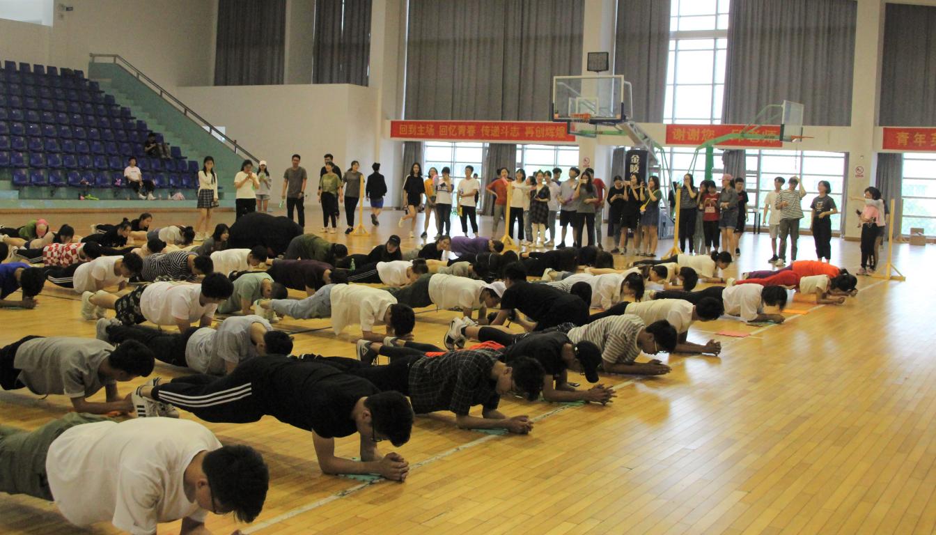 在活动开始前,团学指导老师李雪涛为大家致了简短的开幕词,主要是让同学们了解举办这次活动的目的与意义。随后比赛正式开始。此次趣味运动会的比赛项目有“平板支撑”“龟兔赛跑”“履带战车”“鼓舞人心”五个团体项目,以及“足球小将”“套圈达人”“百发百中”“踢毽子”“吹乒乓球”五个单人项目。比赛还未开始,选手们就个个摩拳擦掌,跃跃欲试。项目分批进行,在比赛过程中,各队队员都表现得相当活跃,他们相互合作,互帮互助。各队都严格遵守比赛规则,气氛热烈。每个项目都在工作人员的指引下顺利进行。虽然天气比较热,阳光照得人直流汗,但是不论是工作人员还是队各员都积极的参与了比赛,整个场地都充满了欢声笑语。