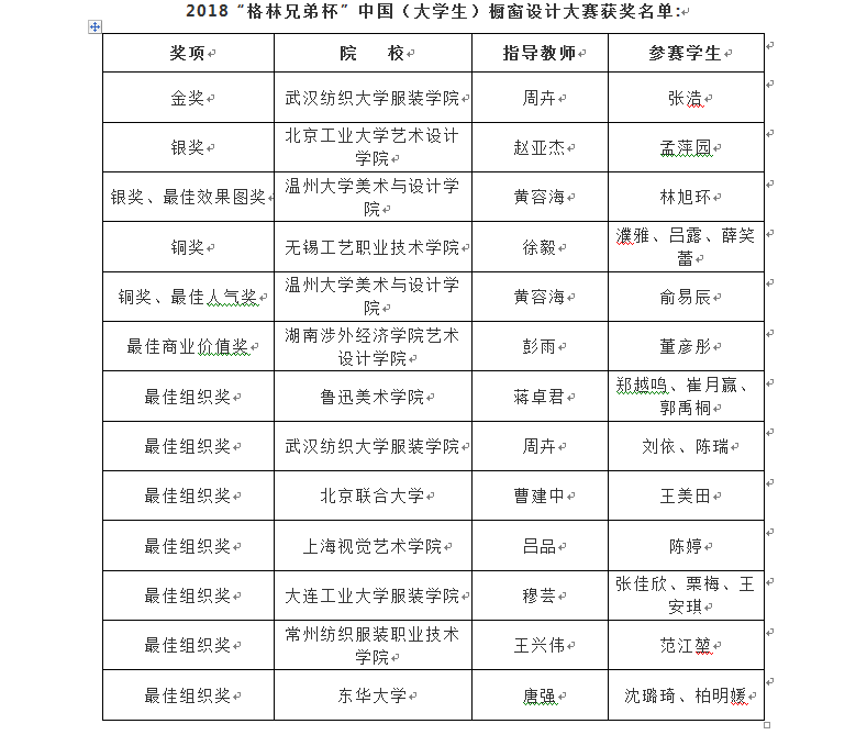 2018“格林兄弟杯”中国(大学生)橱窗设计大赛于5月18日在北京落下帷幕,在当晚举行的尚坤塬·2018中国国际大学生时装周颁奖典礼上,免费av影片 黄容海老师指导的14服装展示班两位学生的参赛作品狂揽4项大奖。林旭环同学的作品《昨日世界》荣获银奖和最佳效果图奖;俞易辰同学的作品《迷恋》荣获铜奖和最佳人气奖。