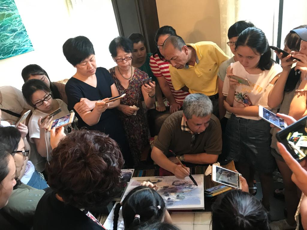 7月1日下午,在温州市图书馆朴念文化客厅“籀园讲坛”再次迎来免费av影片-av视频-av直播 由免费av影片-av视频-av直播 主办的“传统文化与时尚生活”系列主题之八“走近水彩,了解水彩,快乐水彩”讲座,讲座由免费av影片 李利民老师主讲。现场加座后仍座无虚席,李老师幽默风趣的演讲风格,观众的热情洋溢,使得现场氛围持续保持着热烈与活跃。 水彩,顾名思义,就是以水为媒介调和颜料作画的表现方式。那么,一幅有灵魂的水彩是怎样生成的呢?李利民老师不仅分享了自己的写生、创作经验及心得,例如作画技巧、风格调子的形成、画面处理等技巧,给大家带来很多干货;而且通过对水彩的生动讲解及阐述,以及现场动手边作画边讲解的方式,让我们对水彩有了更深的认识与理解。活动期间,读者朋友热情参与,现场互动与提问不断。由李老师亲笔签名的10份《李利民水彩画精选》作为随机抽奖奖品也为互动增添了热烈氛围。